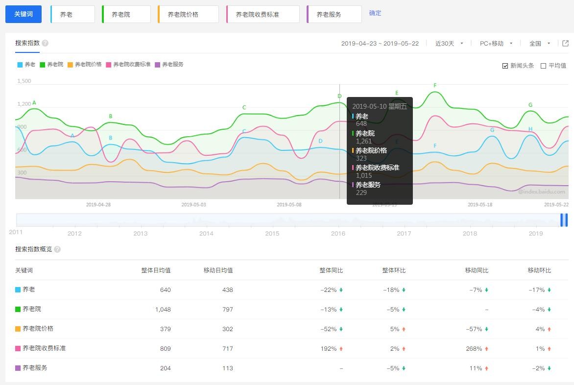 有的站長直接靠想象定義關鍵詞,云優化不推這種方式。可用關鍵詞挖掘工具將分析后導出來,然后再結合客戶定義,產品屬性進行二次篩選。云優化推薦使用百度專業的指數分析工具index.baidu.com進行關鍵詞價值分析。無論使用什么工具一定要結合自身的實際狀況進行。并非指數越高價值越大。例如我們上面所講關鍵詞定義示例。轉化率最高的并不是“養老” 而是養老院價格、養老院收費標準這類詞。養老是一個很泛的詞,泛詞需求大但是轉化率低。核心詞只有結合實際詞意才能得到更大的轉化,如:養老院,若再具體一些應該結合你服務的區域,如北京養老院這類詞,若還要具體的話應該是:北京養老院價格這類詞。可能大家還有疑問,建議站長們,把網站增加上百度統計tongji.baidu.com,針對來路轉化進行分析,針對落地頁的體驗和內容進行完善,針對頁面加載速度進行改進。只有減少客戶的訪問過程、將需求直觀展現給用戶才能得到更好的轉化。
